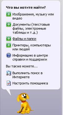 ниже слева) выбираем, как правило, команду, "Файлы и папки".