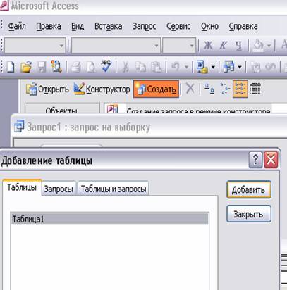 4. В окне Добавление таблицы (см. рис. справа) выделить таблицы,