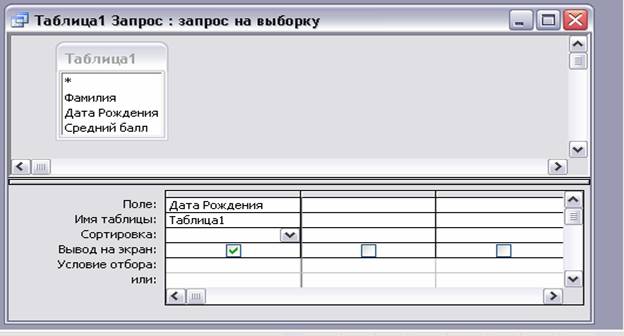 бланка конструктора запроса на выборку всех учащихся из Таблицы 1