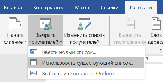 - С помощью команды Рассылки - Список получателей в документе Фамилия_Заготовка установить связь с документом Фамилия_Список.