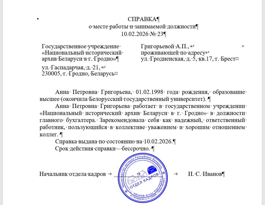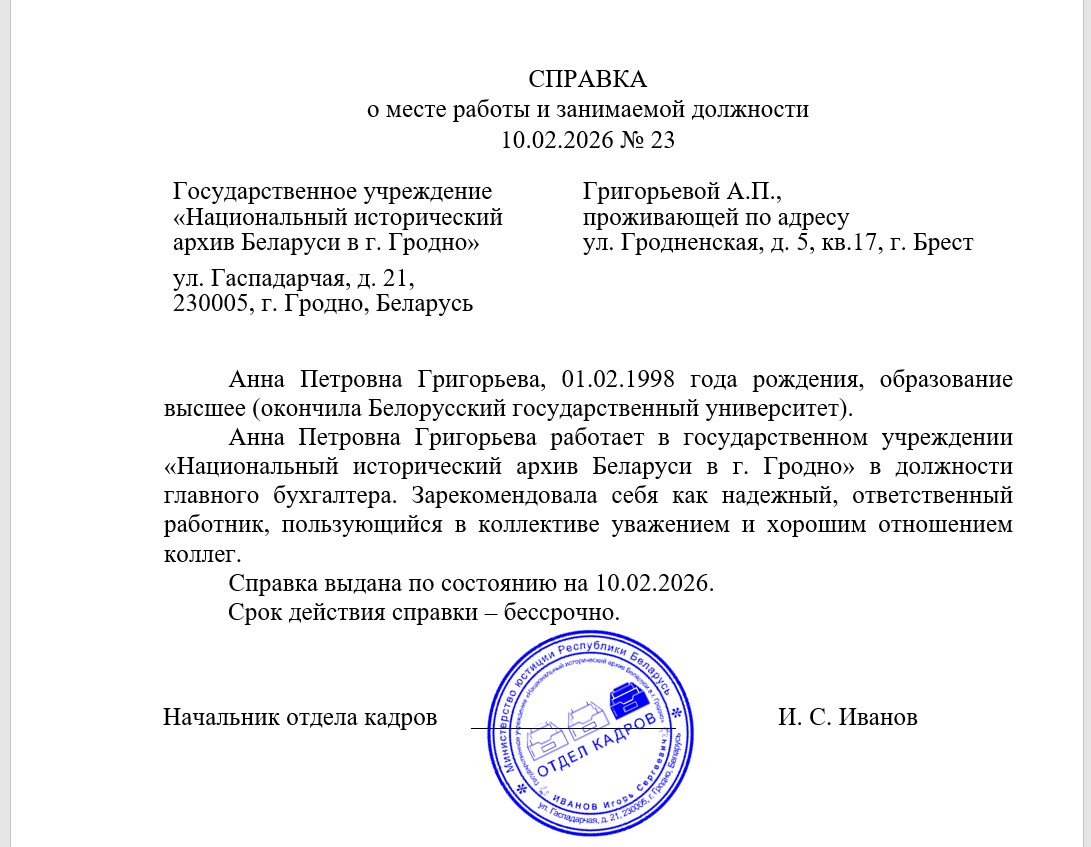- Сохранить созданные письма как PDF-документ под именем вида Фамилия_Справки.