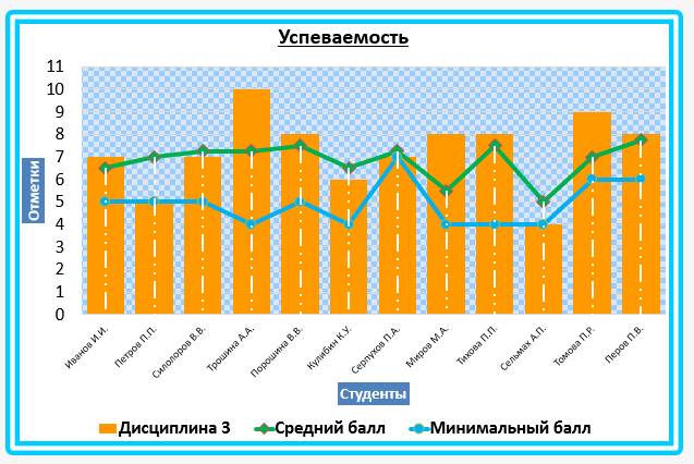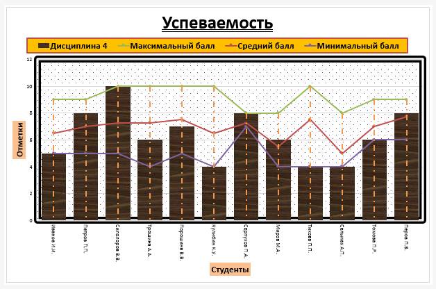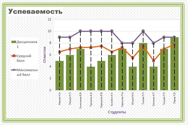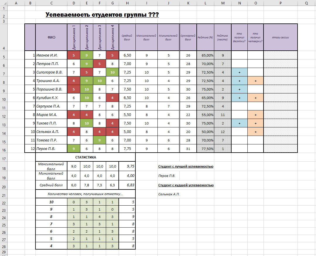 iv) все числовые значения, за исключением отметок, вычисляются с использованием функций МИН(), МАКС(), СРЗНАЧ(), СУММ(), СЧЁТЕСЛИ();