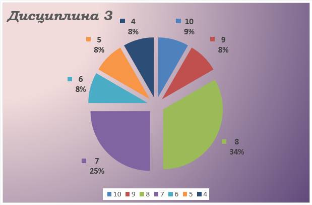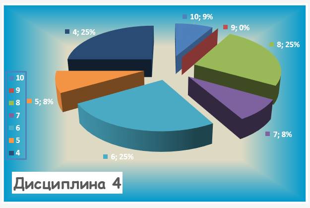 iii) посредством условного форматирования задать заливку для ячеек с отметками 9-10 и с отметками 4-5 контрасных цветов из палитры согласно варианту;